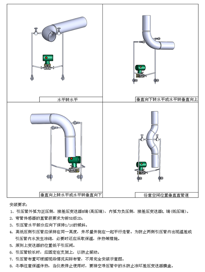 S型传感器可以在任意的直管段上安装,无需装在自然转弯处。